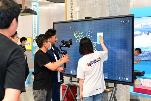 不僅如此,本次展覽還設置很多有趣的展項。比如可樂冰沙機,僅用8秒就可以把可樂變成冰沙;海信智慧黑板,在大屏上用“筆”無限書寫,“黑板”彈鋼琴;海信智學軟件,一秒鐘出一套試卷;海信智慧平板,小朋友們更可體驗老爸老媽的開會日常,成為會議中的“C位擔當”、毫不費力和外國人英語交流、會議紀要掃碼帶走……