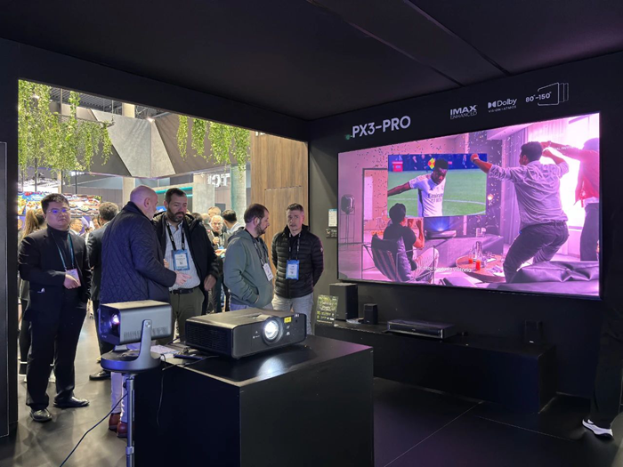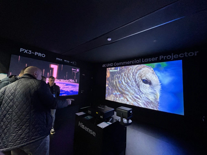 海信商用顯示與海信歐洲激光產品聯合亮相,現場展示三色激光影院PX3-PRO,120吋高增益抗光屏幕,三色激光投影C2 Ultra,為觀眾帶來高端視聽品質和大屏沉浸觀影體驗。