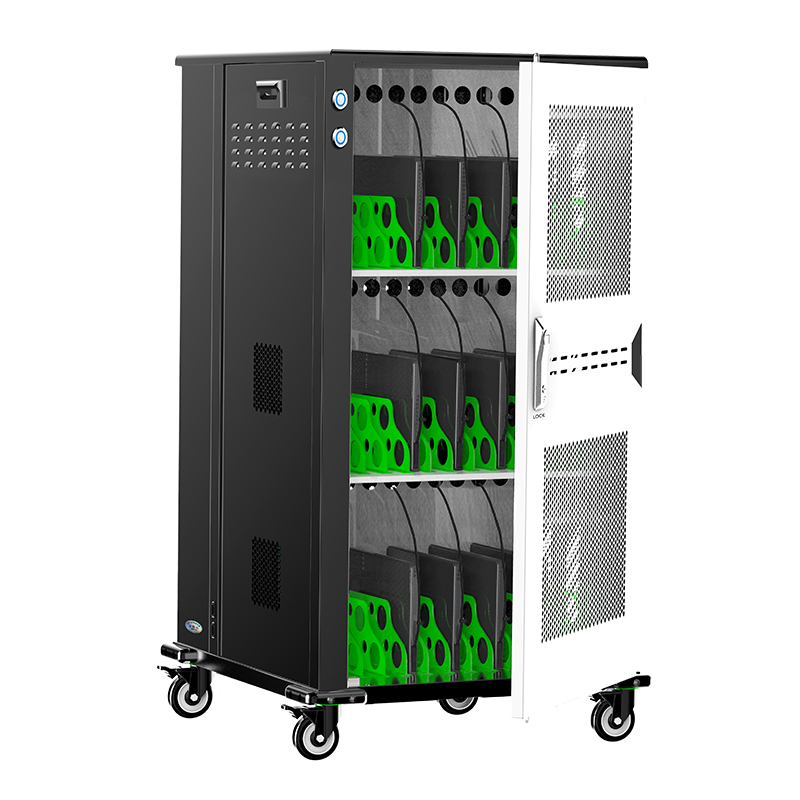產品詳細介紹品牌:際慶科技 型號:NB36 NB36招標(應標)參數: 功能參數: 1、★AC 110V-240V電源插座36個,兼容各類筆記本設備36臺,配合原裝適配器充電; 2、★金屬按鈕開關,可過15A以上大電流,兼具電源開關和通電指示功能,雙120mm風扇,搭配智能溫控系統,30℃±8自動啟停 ; 3、★主動式PEC節能開關電源,柜內置十重安全保護①雷擊保護②浪涌保護③過載保護④漏電保護⑤隔離保護⑥過流保護⑦過壓保護⑧短路保護⑨過充保護⑩灌流保護; 4、★自動消毒功能,紫外線+臭氧O₃雙重消毒,搭配金屬按鈕開關,啟動25min后自動關閉(選配項); 5、★定時充電具有電子顯示屏/多組設置/精準定時/倒計時設置(根據使用習慣隨意設定啟停時間段)(選配項)。 結構參數: 1、★外形尺寸≤590*1100*620mm(含腳輪、防撞角),工位容積為413*245/307*36mm ,頂邊圓弧(≥R8)設計; 2、★兩側設有ABS工程提手,柜體四個底角加裝凸高15mm軟塑防撞角,配裝 4個3寸帶剎車天然橡膠靜音腳輪(高度105mm); 3、★三層式黑色+白色經典搭配,12(每層)工位設計,配裝ABS綠色隔斷,前后門為帶鎖單開門,前門為設備存放區域,后門為電源管控區域; 4、★前后門板與側板設有對流孔,通風散熱。 產品資質: ①★整機CCC認證(原廠蓋章證明) ②★具有商標(國際分類20和9)證書(原廠蓋章證明) ③★具有ISO9001:2015質量管理體系認證(原廠蓋章證明) ④★具有產品專利證書(原廠蓋章證明)