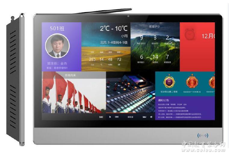 校園文化是一個不斷建設、反思、提高的系統(tǒng)工程,是學�?沙掷m(xù)發(fā)展的源動力,是學校綜合辦學水平的重要體現(xiàn),也是學校個性魅力與辦學特色的體現(xiàn),更是學校培養(yǎng)適應時代要求的高素質人才的內在需要。許多傳統(tǒng)的班牌上,不再是簡單的數(shù)字,有的加了班級的班徽,有的加了班級的照片,有的加了班級的榮譽等等。總之,班牌的內容越來越豐富多彩,大家都希望班級的特點盡可能濃縮在這小小班牌之上。[1]班牌與信息技術的應用融合也應運而生,電子班牌是德育信息化的重要載體與抓手,其在班級文化建設、校園文化引領等方面的應用,可有效促進人文性智慧校園的形成。 電子班牌即數(shù)字化形式的班牌,是一種應用于教育教學的電子顯示設備,可以是數(shù)碼相框,也可以是平板電腦等。電子班牌的存儲與交換介質采用USB接口、網絡接口或存儲卡模式等,通過音視頻、網絡、電視信號等格式進行內容的呈現(xiàn),可以實現(xiàn)與班級文化建設相關的班徽、音樂、視頻、照片幻燈式播放、時鐘顯示、通知公告、班級考核等。 |