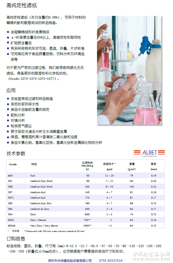 產品詳細介紹始創于1584年的哈內姆勒,是德國最古老的紙業制造者。 在400余年的悠久歷史中,公司的創新實力不斷增強,通過與全球合作伙伴的密切合作,我們可以將研究成果快速轉化為新產品。 哈內姆勒生產世界最高質量的過濾材料,已有超過130年的歷史。我們的競爭優勢在于產品的高純度和一致性。從原材料的選擇,到生產流程嚴格的質量控制,使我們可以為客戶的高重現性需求提供保證。 我們的產品在多個領域都得到了客戶的認可,包括食品飲料行業,制藥和化學行業,農業產業,環境監測與汽車工程領域。 ALBET LabScience是我們的一個產品商標,產品系列里包括濾紙,濾膜,濾紙筒和注射器過濾器等多種產品,專門提供日常實驗室應用,產品多種規格大小以供選擇。 哈內姆勒鄭重承諾: 1、100多年開發和制造濾紙的經驗; 2、最高質量標準-所有測試方法均標準化; 3、注重客戶和市場需求; 4、完整的批次追溯系統,可追溯到原材料。 硬化的高純濾紙(灰分含量約0.05%)具有極高的化學和物理性能,特別適用于真空和壓力條件下過濾, 以及在酸性和堿性溶液中的使用。 由超精棉絨和纖維素制成; α-纖維素含量在95%以上,具有很高的穩定性和耐用性; 濕強度高;容易刮下或洗下沉淀,無纖維釋出; 經少量含氮樹脂硬化,沒有雜質混入; 礦物質含量低; 高耐腐蝕性,如硫酸和硝酸(40%,50℃),堿液(10%,20℃); 有多種規格可選,圓盤、折疊、片式和卷式。 |