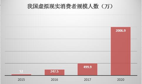 虛擬現(xiàn)實(shí)技術(shù)已經(jīng)逐步的融入到人們的日常生活中,用戶規(guī)模不斷提升。數(shù)據(jù)顯示,2015年至2017年我國(guó)虛擬現(xiàn)實(shí)消費(fèi)者規(guī)模為52萬(wàn)人、247.5萬(wàn)人、499.9萬(wàn)人,據(jù)中商產(chǎn)業(yè)研究院預(yù)測(cè),2020年規(guī)模將達(dá)到2006.9萬(wàn)人。