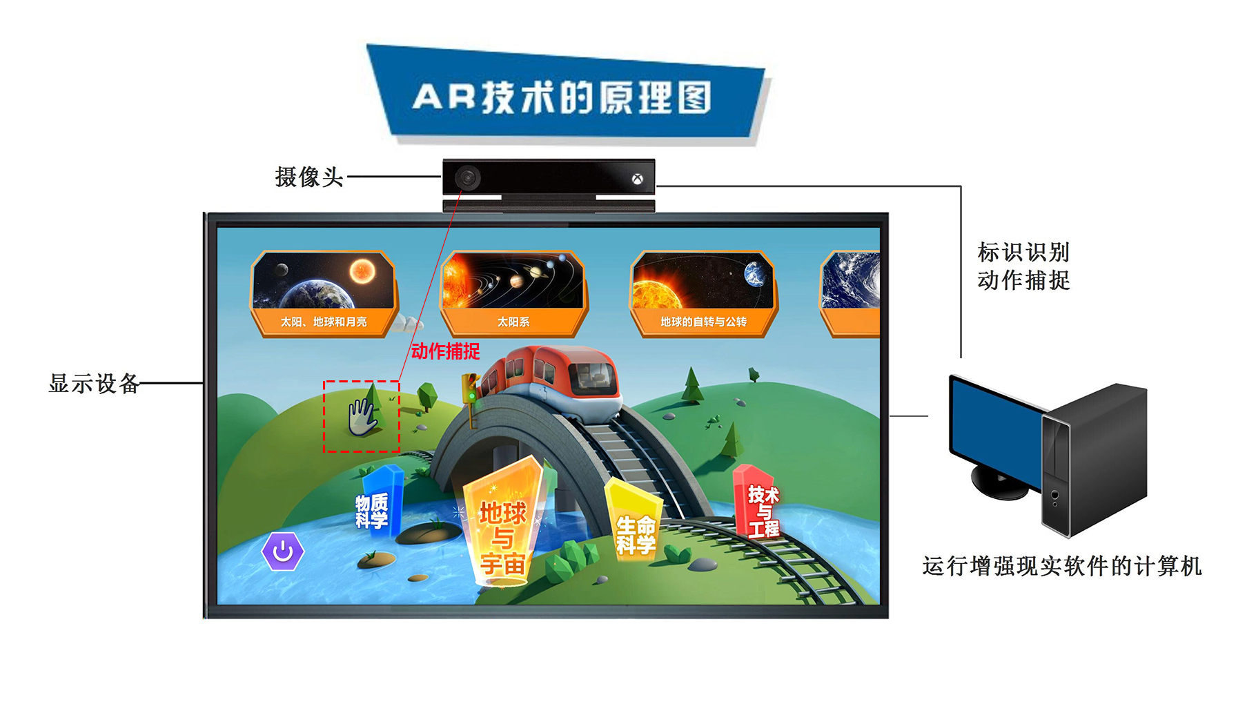 新技術如何與傳統教學內容銜接配合呢?在AR技術出現以前,對于復雜的空間結構及抽象概念問題給我們的直觀感受都有一定的限制,而在AR出現之后,傳統內容知識可以繪聲繪色的躍然在眼前,調動學生多感官參與,為學生的學習提供了新穎的教學工具。