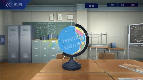 云幻科教AR地理仿真實驗資源通過《麥哲倫航行》故事視頻引入,吸引學生注意力。后續通過虛擬仿真技術模擬地球模型、地球儀等內容進行知識教學,互動操作猶如將地球置于手中,知識可視化、操作趣味化、模式多樣化,集中學生注意力,活躍課堂氣氛,提高教學效率。