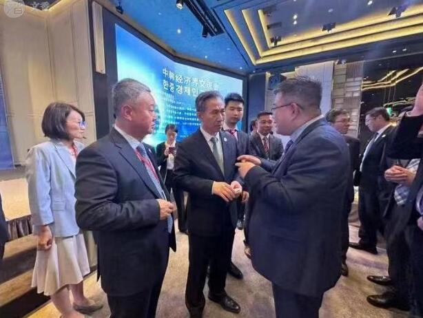 在峰會上,中國國際貿易促進委員會任鴻斌會長與文香董事長朱玉榮深切交流。同時朱玉榮董事長還與其他參會領導和企業家共同探討企業創新發展和市場拓展的新機遇。朱玉榮董事長表示,通過此次峰會,他深刻感受到了中日韓三國在經貿領域的緊密聯系和廣闊合作前景。他相信,在三國領導人的共同推動下,中日韓三國將進一步加強經貿合作,實現互利共贏。