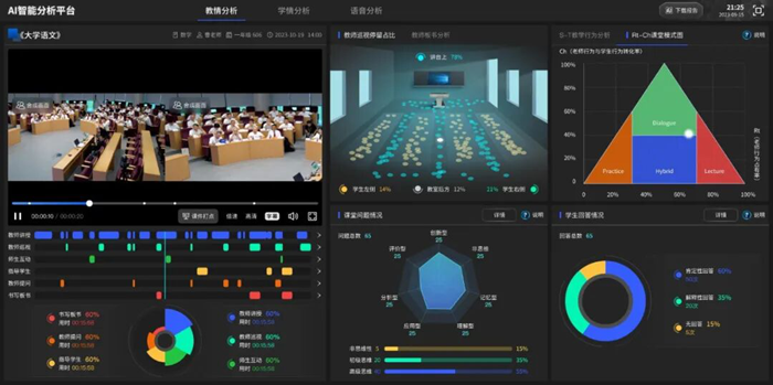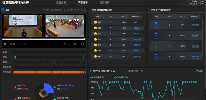 文香AI教學分析系統通過三大核心模塊——教情分析、學情分析與語音分析,實現了對教學過程的深度賦能,為課堂教學提供全方位數據支撐。采用本地化行為分析與語音轉寫技術,不依賴網絡環境,課程結束后即時生成詳盡的課堂報告與學情數據。系統通過實時捕捉課堂教學動態,精準分析師生互動情況,為教師提供客觀的教學效果評估,助力教師精準把握教學細節,持續優化教學方法。