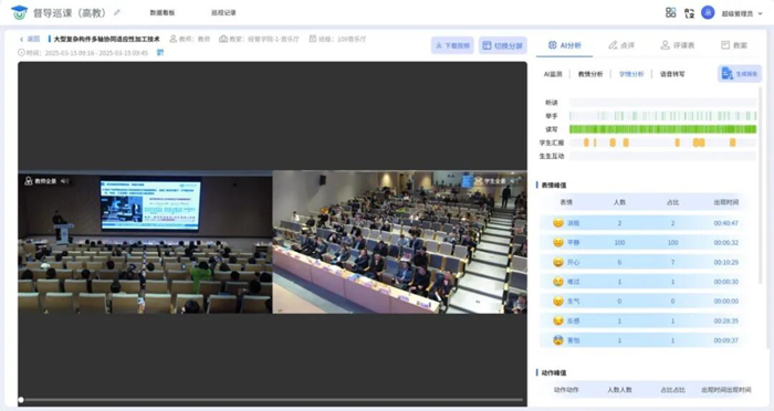 文香智慧督導巡課系統深度融合多種AI大模型,為教學督導工作帶來革命性變革。系統通過自動化處理海量巡課數據,實現快速分類、整理和分析,大幅提升數據處理效率。教務管理人員通過可視化界面隨時隨地查看課堂教學實況,系統支持多課堂同時巡視,動態統計到課率、前排就坐率、抬頭率等關鍵指標。督導人員可及時獲取精準的巡課分析報告,為教學決策提供有力支持,推動教學質量持續提升。
