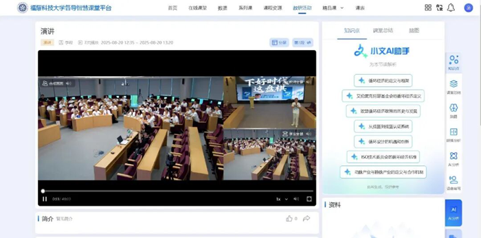 文香智慧教育解決方案正在福耀科技大學展現出顯著成效,通過AI教學分析系統、智慧督導巡課和小文AI助手三大模塊相互協同,共同構建了"教-學-評-研"一體化的智慧教學新生態。