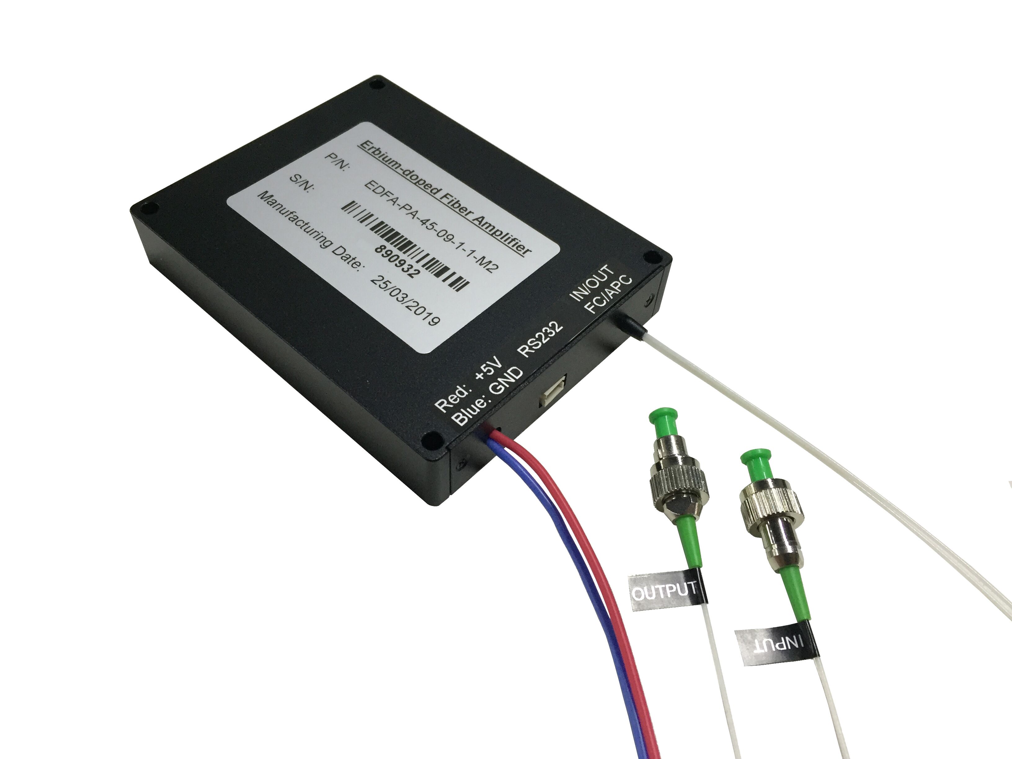 模塊采用多泵浦激光器合波技術,通過不同類型泵浦激光器的組合以及光纖類型的匹配,實現 C 波段范圍內增益平坦、低噪聲光信號放大。出于激光安全考慮,拉曼放大器設計了自動泵浦激光器關閉功能,可根據不同類型的事件,如斷纖、線路老化等,自動關閉激光器輸出,以保障人身安全。模塊內置驅動電路與邏輯控制電路,對泵浦激光器溫度、模塊溫度等關鍵信息實時監測。模塊可通過上位機遠程配置工作。全部狀態參量與配置信息可由上位機端主控軟件進行靈活的調整與監控。模塊出廠預設狀態參數依據具體訂貨型號或客戶要求提供默認配置,可提供模塊式, 臺式以及機架式多種外形結構尺寸的產品,以滿足客戶的不同應用需求。