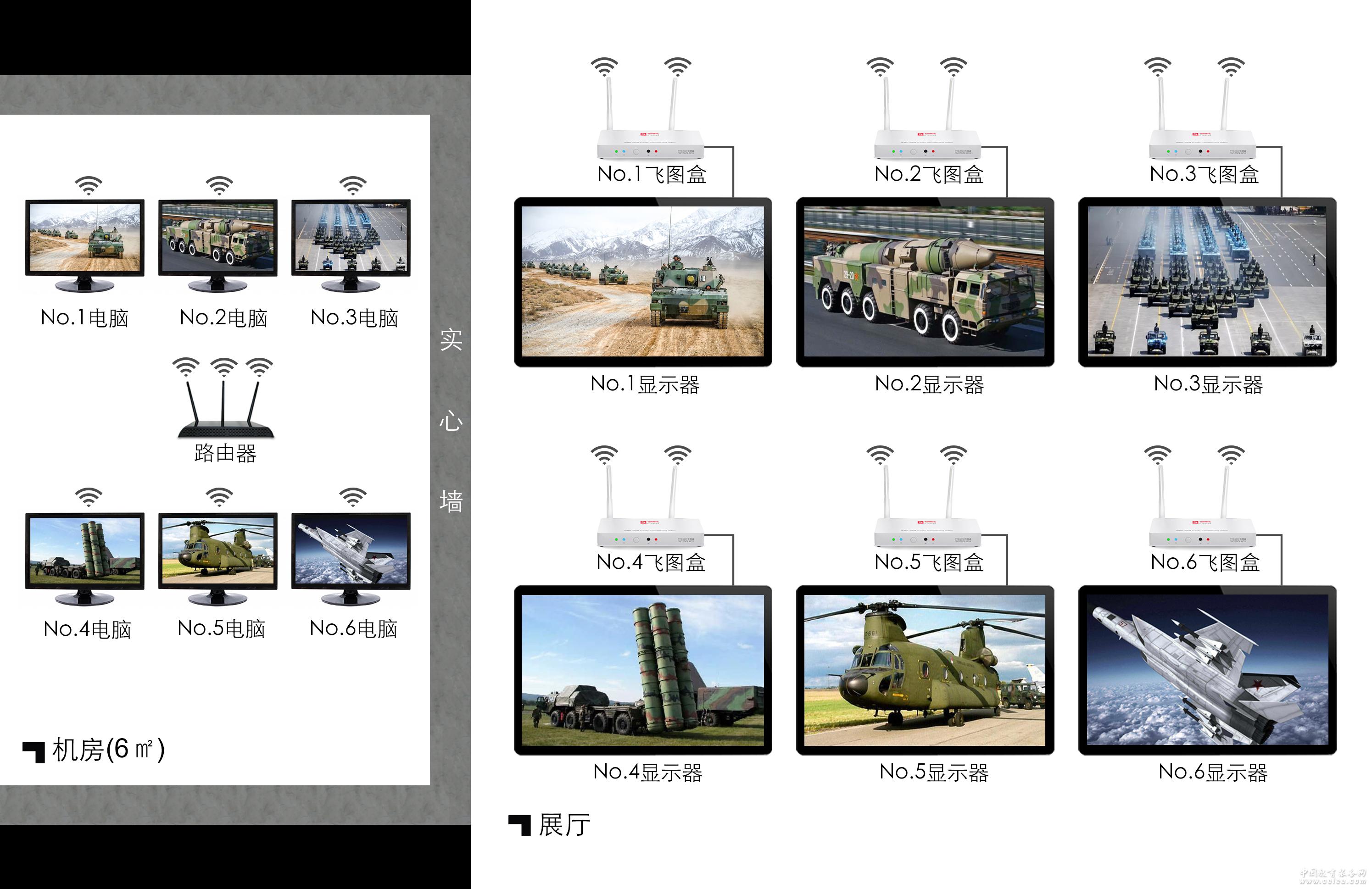 產品詳細介紹 日前,飛圖盒的應用案例又增添了新的內容。經過客戶在全國范圍內的挑剔“海選”,飛圖盒有幸進駐威海某軍工企業的展廳。這個展廳的無線布局不算太復雜,但是它有一個最大的難點,就是數據傳輸量非常巨大。 在這個應用中,一個6㎡的小房間內,擺放6臺電腦,播放6個不同的視頻。要求把這6個不同的視頻無線傳輸到一墻之隔的展覽大廳里面,進行同步播放。我們剛拿到這個需求的時候,也是不確定是否可以實現,因為它的難點在于要通過一個路由器同時無線傳輸6路不同的視頻源給6臺顯示器,即把No.1電腦的圖像無線傳輸給No.1顯示器,把No.2電腦的圖像無線傳輸給No.2顯示器,把No.3電腦的圖像無線傳輸給No.3顯示器,把No.4電腦的圖像無線傳輸給No.4顯示器,把No.5電腦的圖像無線傳輸給No.5顯示器,把No.6電腦的圖像無線傳輸給No.6顯示器。更困難的是,兩個房間之間還有一堵實心墻,對WiFi信號的衰減很嚴重,這就又增加了難度。 通過反復測試與驗證,并進行定制化開發,最終我們成功的實現了這個功能。目前已經穩定使用4個月,我們沒有接到任何售后服務要求。遺憾的是,軍工單位,不讓拍照,不能透露名稱,這里就沒有實物照片可供大家參考了。 |