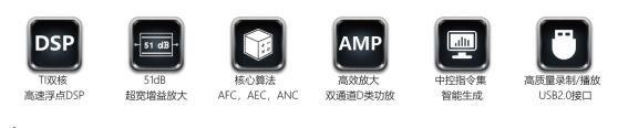 LION數(shù)字音頻一體機在TIGER專業(yè)版處理器基礎(chǔ)上集成了雙通道145W數(shù)字功放模塊。信號處理與功率放大在一塊主板上工作,縮短了信號通路,簡化了工程布線。支持帶電源RS232控制端口。可選配最新的反饋消除(AFC)、回聲消除(AEC)、噪聲消除(ANC)算法。