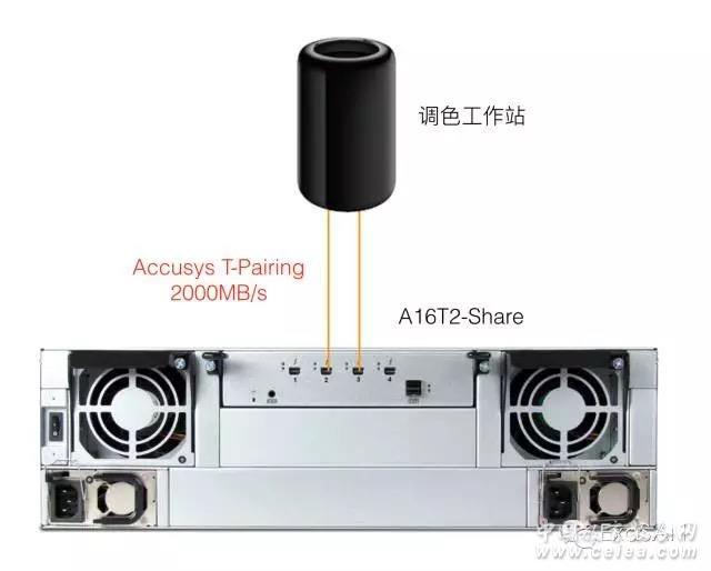 產品詳細介紹4K DPX調色雷電存儲系統 調色是視頻編輯流程中一個重要環節,隨著4k的普及,越來越多的用戶開始想用4K DPX進行調色,尤其是電影4K DPX調色時,每層的讀寫帶寬要求非常高,讀寫性能從1200-1900MB/s不等。但是在Macpro的主機上要如何實現這么高的讀寫性能呢? 目前沒有一臺雷電2.0存儲可以突破1300MB/s的讀寫性能。難道Macpro上就無法做4K DPX的調色了嗎,非也。Accusys A16T2-share存儲系統內嵌了T-Pairing功能,可以在雷電2.0的接口下通過兩條雷電鏈路的聚合實現一臺存儲系統滿足4K DPX調色。A16T2-share通過T-Pairing功能可以支持2000MB/s的讀寫性能。也許您可能會說,我用兩臺8盤位的雷電存儲系統也可以實現,是的可以。不過您需要在Mac OS下將兩臺8盤位雷電存儲系統做成RAID0,系統下的RAID0是不安全的,是有風險的,如果其中一臺8盤位出現問題,這個RAID0就宕機了,數據有可能就沒有了。A16T2-share完全不需要在Mac OS下做RAID0,您只需要簡單地連接兩條雷電線就好了。