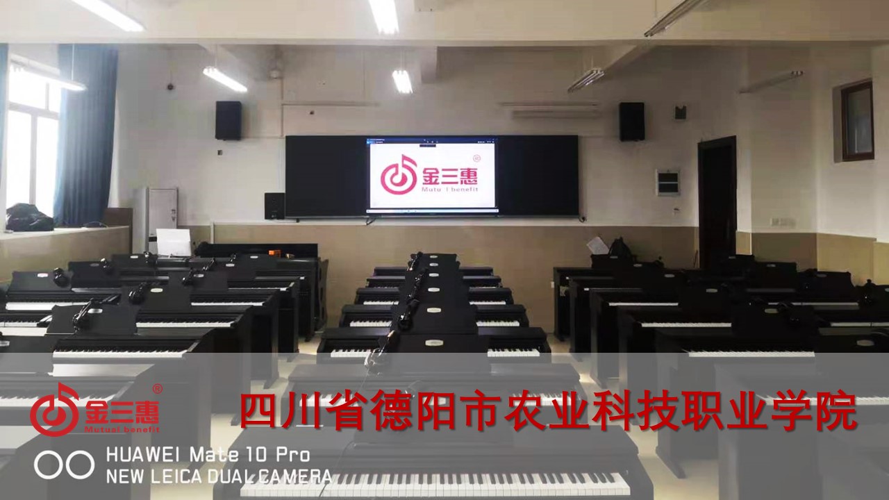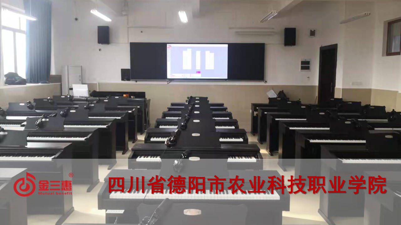 四川省德陽市農業科技職業學院的電鋼琴教室正式開始使用,本校數字化音樂教室由北京金三惠科技有限公司負責提供、安裝、培訓。