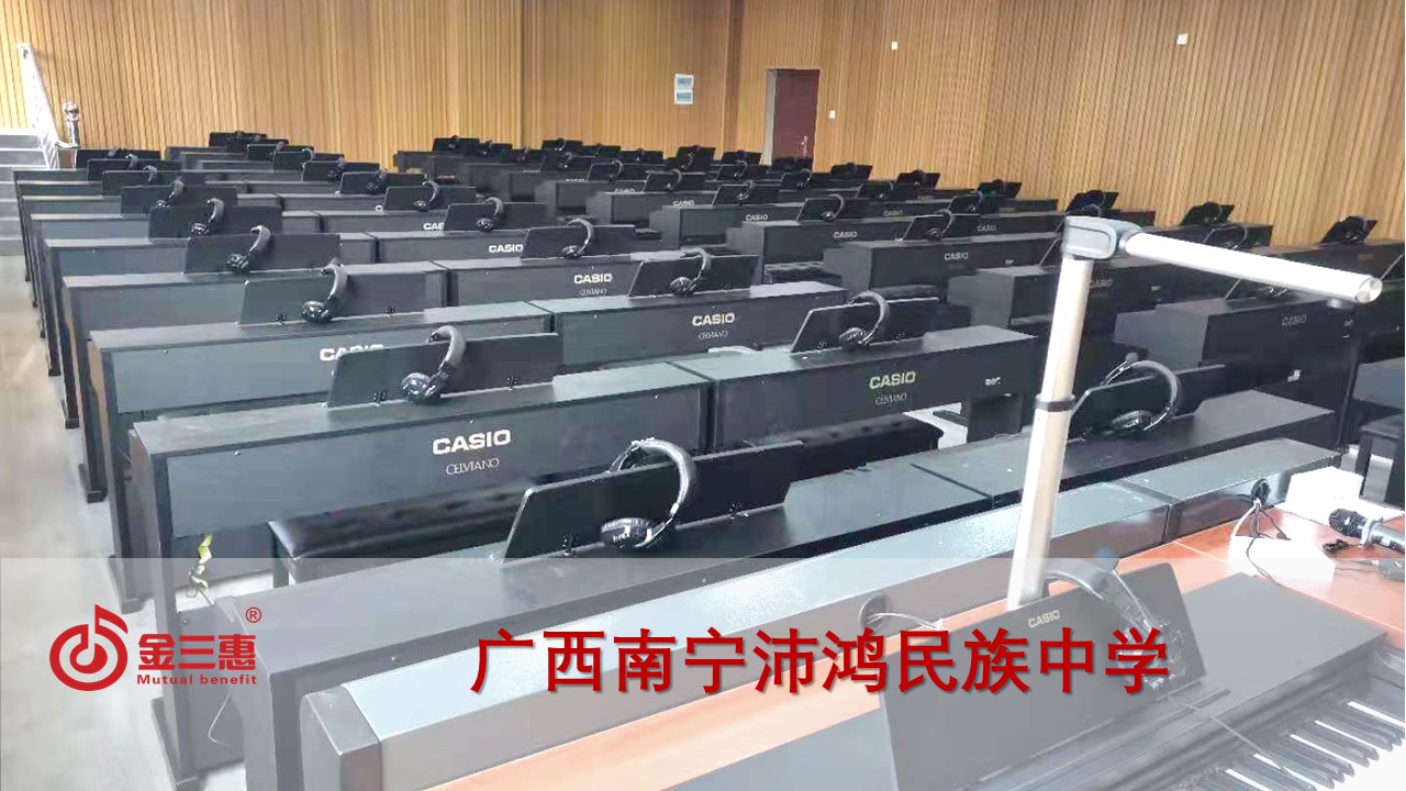 廣西南寧沛鴻民族中學的數字音樂電鋼琴教室正式開始使用,本校電鋼琴教室由北京金三惠科技有限公司負責提供、安裝、培訓。
