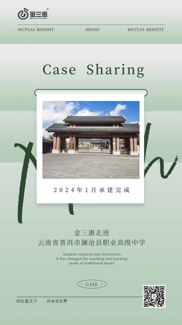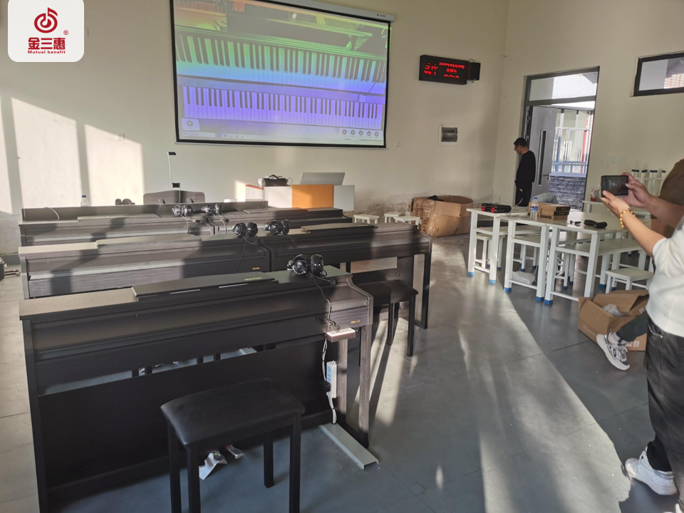 2024年1月,金三惠數字音樂教室走進云南省普洱市瀾滄縣職業高級中學,為學校提供了5+1的電鋼琴教室配備了金三惠電鋼琴教學系統、電鋼琴、數字音樂教學儀等教學教具等。