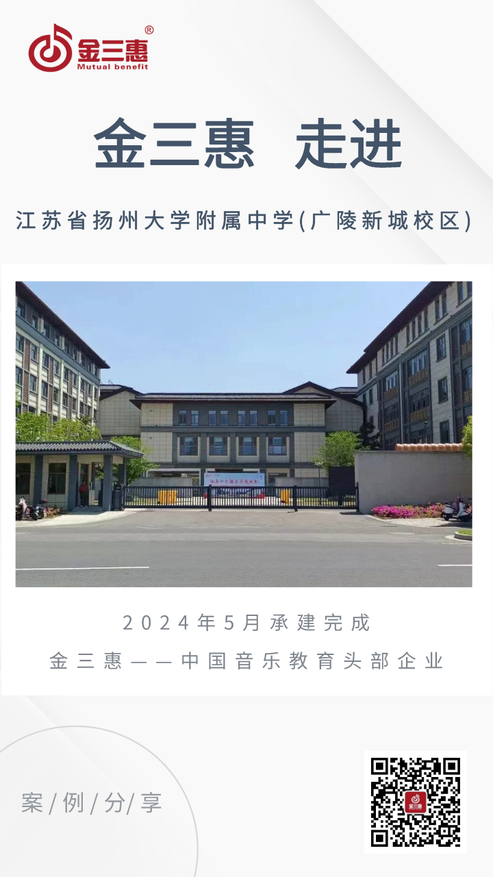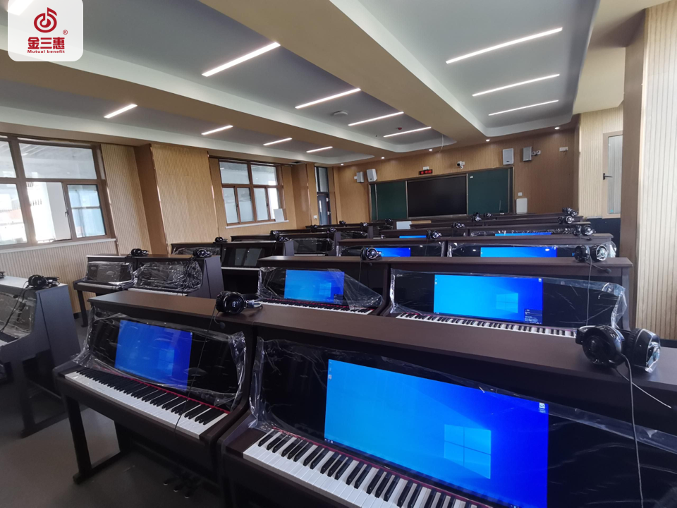 2024年5月,金三惠數(shù)字音樂教室為江蘇省揚(yáng)州大學(xué)附屬中學(xué)(廣陵新城校區(qū))提供、安裝、培訓(xùn)的24+1智慧音樂素養(yǎng)教室正式開始使用!配備了金三惠教學(xué)系統(tǒng)、電鋼琴、數(shù)字音樂教學(xué)儀等教學(xué)教具。
