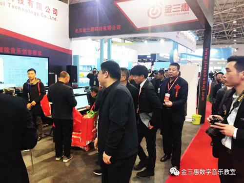 不僅觀眾對金三惠的產品非常熱情,教育裝備中心多位領導也來到金三惠的展臺,參觀體驗和指導,同行也一樣關注金三惠數字音樂創客教室,體現了高層領導和同行們對于數字音樂教育產品發展的重視和關注。