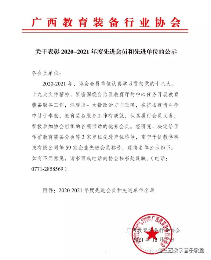 2020-2021年,協(xié)會會員單位認(rèn)真學(xué)習(xí)貫徹黨的十八大、十九大文件精神,緊密圍繞自治區(qū)教育廳的中心任務(wù)開展教育裝備服務(wù)工作,涌現(xiàn)出一大批政治方向正確,在抗擊疫情斗爭中甘于奉獻(xiàn),教育裝備服務(wù)工作有成就,認(rèn)真履行會員義務(wù),積極參加協(xié)會組織的各項(xiàng)活動的優(yōu)秀會員。經(jīng)研究,決定給予學(xué)前教育裝備分會等3 家單位先進(jìn)單位稱號,南寧千帆教學(xué)科技有限公司等59家企業(yè)先進(jìn)會員稱號,現(xiàn)將名單公示如下。如有不同意見,請書面或電話向協(xié)會秘書處反映。
