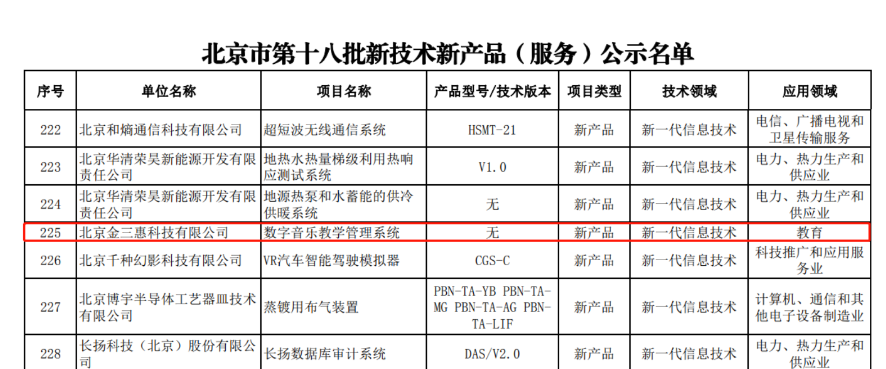 近日,根據(jù)《北京市新技術(shù)新產(chǎn)品(服務)認定管理辦法》(京科發(fā)〔2014〕622號)規(guī)定,金三惠“數(shù)字音樂教學管理系統(tǒng)”榮獲由北京市科學技術(shù)委員會、中關村科技園區(qū)管理委員會、北京市科學技術(shù)委員會、中關村科技園區(qū)管理委員會等5部門聯(lián)合頒發(fā)的北京市第十八批新技術(shù)新產(chǎn)品(服務)認證。