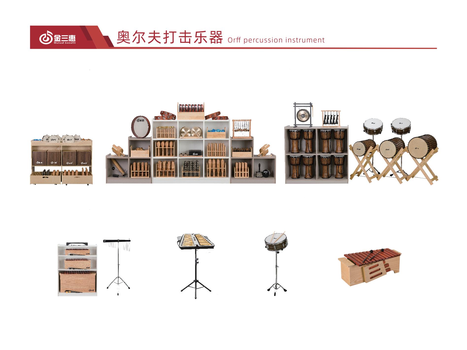 金三惠奧爾夫打擊樂器,秉承著易學、易用、易優的產品理念,所有的木質樂器均采用櫸木的材質。硬度和質感更佳、不僅耐用,而且可以讓木響類樂器發聲準確、清脆、均勻。所有的樂器的噴涂工藝,全面采用綠色環保漆,基本做到無色、無味。