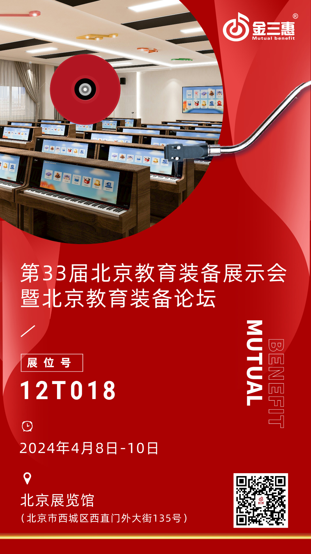 我們誠摯地邀請您參加即將舉行的第 33 屆北京教育裝備展示會。作為一家專注于數字化音樂教育領域的高新技術企業,北京金三惠將在北京展覽館(北京市西城區西直門外大街135號),展位號:12T018,期待您的到來。