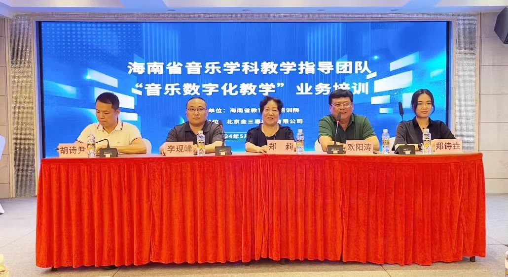 海南省中小學音樂教研員歐陽濤,首都師范大學音樂學院教授、博導、基礎音樂教育課程改革專家鄭莉,北京金三惠總經理李現峰等領導和專家出席,瓊海市教育研究培訓中心胡詩尹主持培訓會。