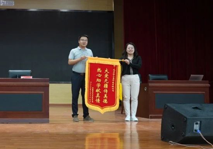 墨玉縣教育局副局長閆靖昇致辭贈(zèng)送錦旗