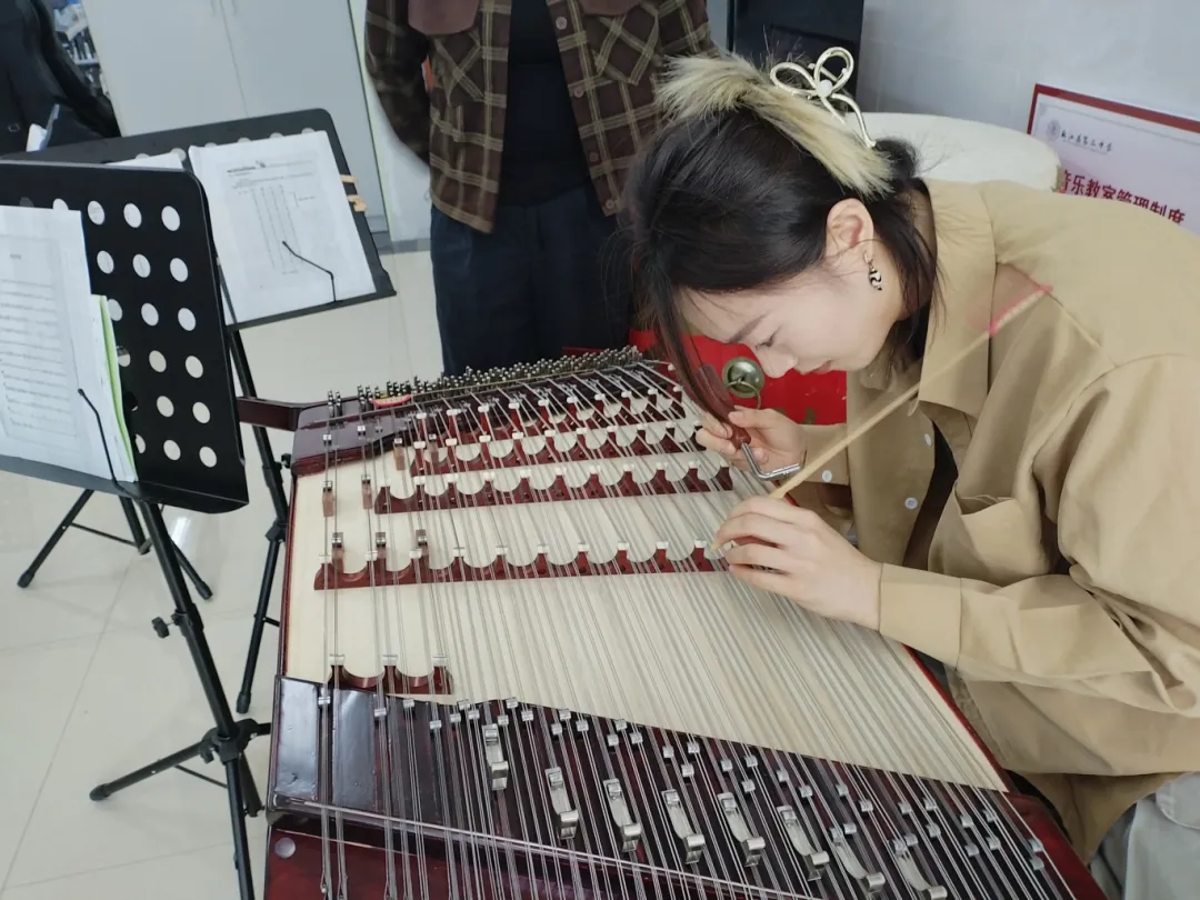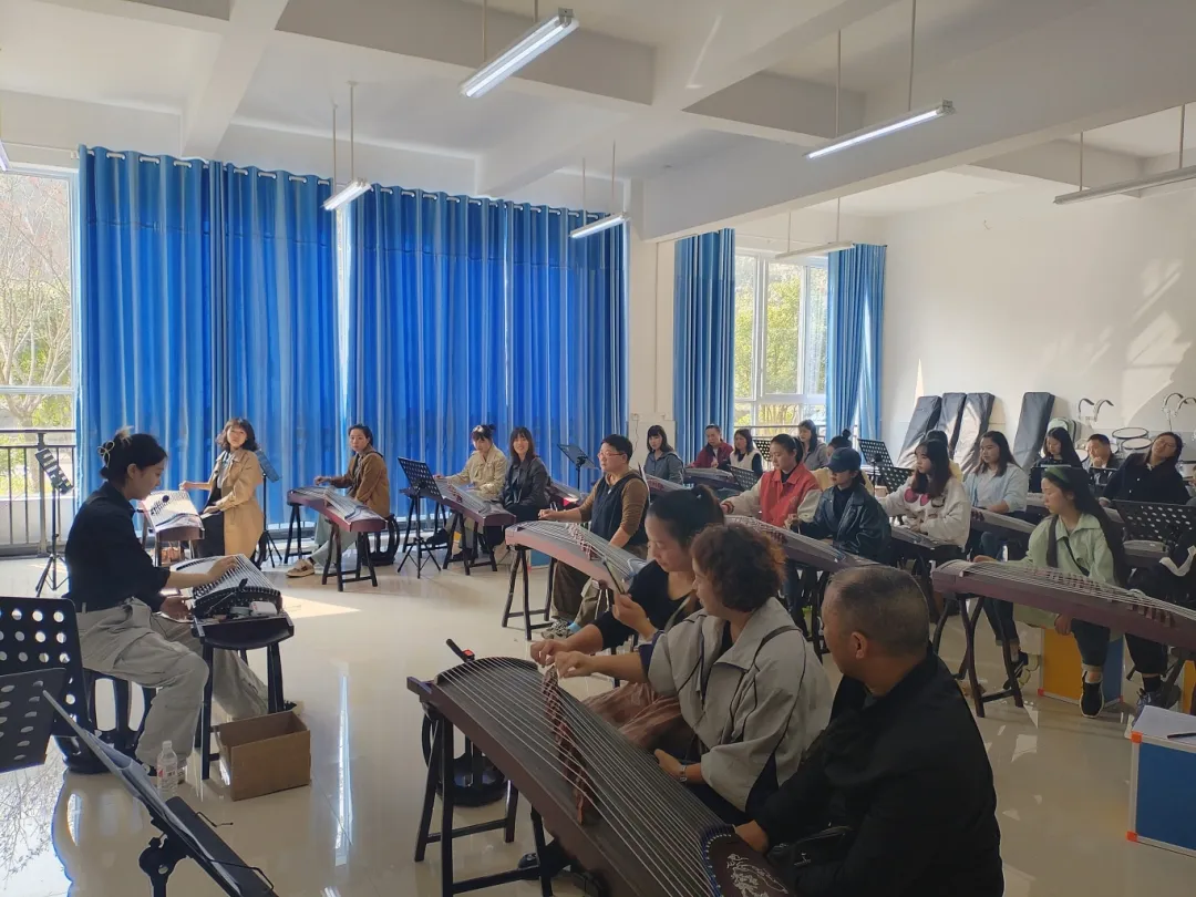 在樂器教學環節,周琳老師和鄭詩垚老師分別帶來了古箏和琵琶的教學培訓。
