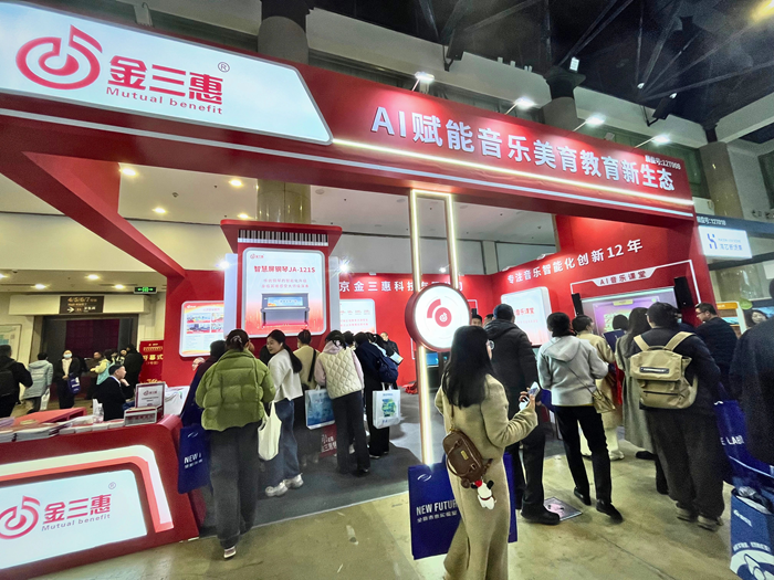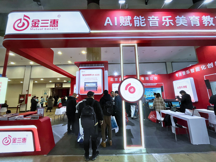 展會首日,金三惠展位參觀者絡繹不絕,公司展出的AI音樂課堂、智慧音樂素養教室、數字音樂教學平臺等核心產品,吸引了眾多教育行業從業者的駐足與體驗。