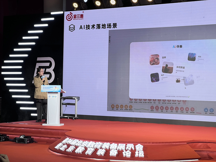 在展會的“人工智能賦能實驗教學高質量發展”論壇中,金三惠資深講師鄭詩垚分享了《智啟樂章:人工智能于音樂教學的多維探索與遠景展望》的精彩演講,探討了人工智能如何在音樂教學中實現個性化學習,鄭老師通過具體案例展示了AI技術在課堂中的應用,包括AI伴奏生成、AI編曲、AI轉譜等,令與會者耳目一新。