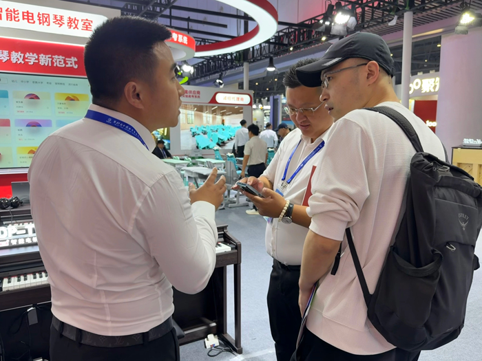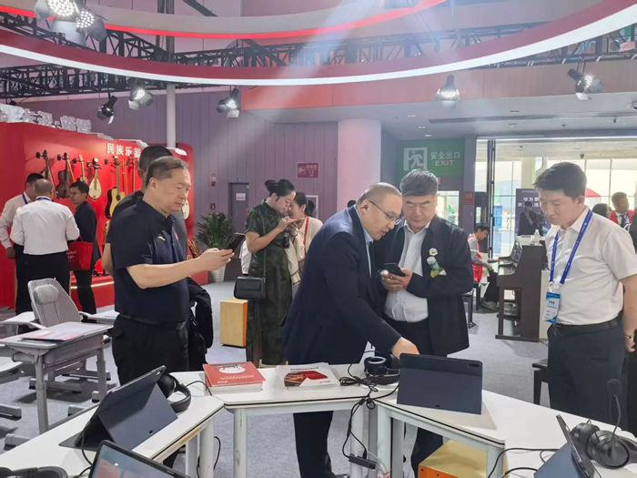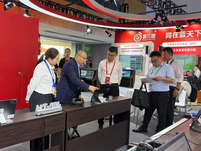 展會首日,金三惠展位便人流如織、熱度高漲。多位教育主管部門領(lǐng)導(dǎo)、院校專家及行業(yè)嘉賓專程蒞臨金三惠展位參觀指導(dǎo)。領(lǐng)導(dǎo)們詳細(xì)了解了金三惠在音樂教育數(shù)字化、智能化領(lǐng)域的最新研發(fā)成果與應(yīng)用落地情況,并對公司深耕智慧美育給予高度認(rèn)可。
