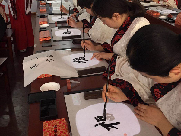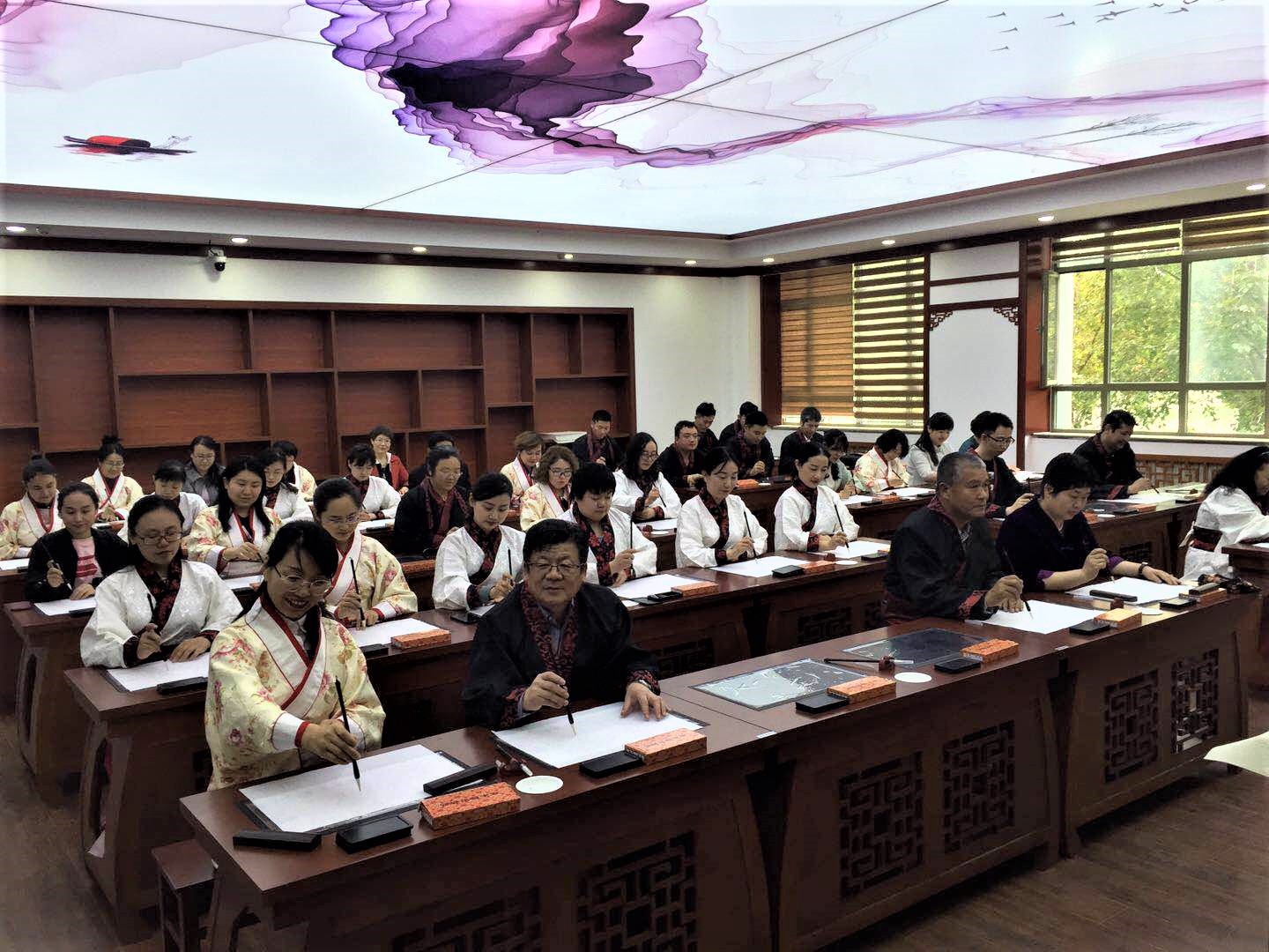 “同學們進步很快。在這樣的文化氛圍里,他們很直觀地體驗了中華文化的優美和宏大,對中華文化的認同感和認知也更加感性、具象,這種學習方式,對年輕人建立文化自信起到良好作用,一些傳統節日,學生們還穿著漢服,在這間教室做節目,拍攝視頻,一個學期下來,練的字可以掛在墻上展示,很有成就感�!毙陆斀洿髮W基礎學院副院長李果說。