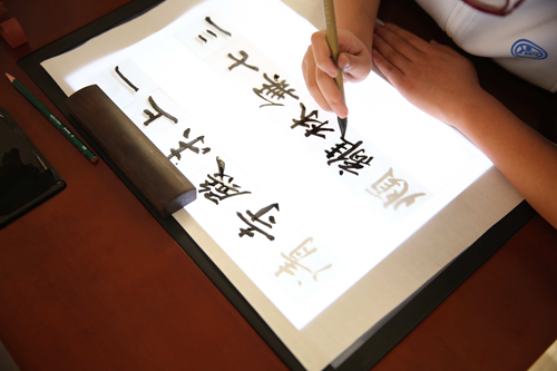 劉書貴說:“書法描摹是掌握漢字結(jié)構(gòu)最有效最直接的一個方法,這一套設(shè)備對于初學書法的孩子來說,作用是很大的,尤其是在這個屏幕上臨摹古帖的時候,覆蓋了之后透明度比較高,特別清晰。學生可以直接用毛筆對著這個影子進行描摹,這套設(shè)備在這個方面做的比較好。”