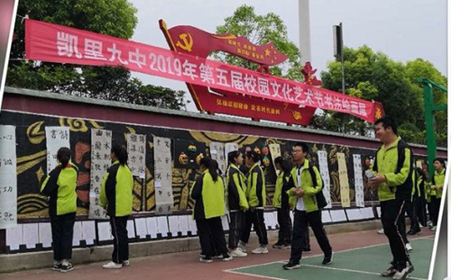 凱里九中2019年的校園文化藝術(shù)節(jié)舉行了書法比賽,同時在校園內(nèi)展出了同學們的書法和繪畫作品,頗具神韻的書法作品引起了同學們的熱烈圍觀。