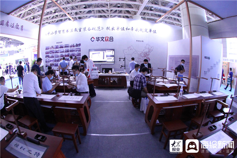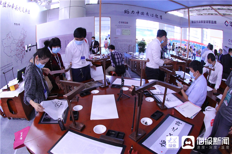 9月27日上午,2020山東省教育裝備博覽會在煙臺國際博覽中心盛大開幕。來自行業內300余家知名品牌企業參展,標展展位共計1600余個,展示面積35000平米,展示產品達10000余種,吸引了大批觀眾到場觀展。在現場的火熱氣氛中,“華文眾和”展位“靜”得有些特別:柔和的燈光下,體驗者端坐在古色古香的數字臨摹臺前提筆而書。這一刻,傳統與科技不期而遇,完美融合。