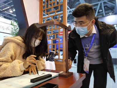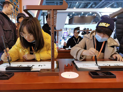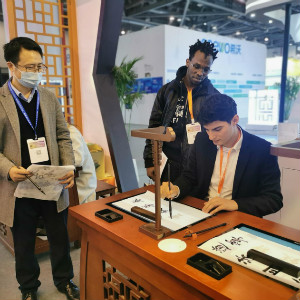 ▲國際友人體驗(yàn)智慧書法產(chǎn)品