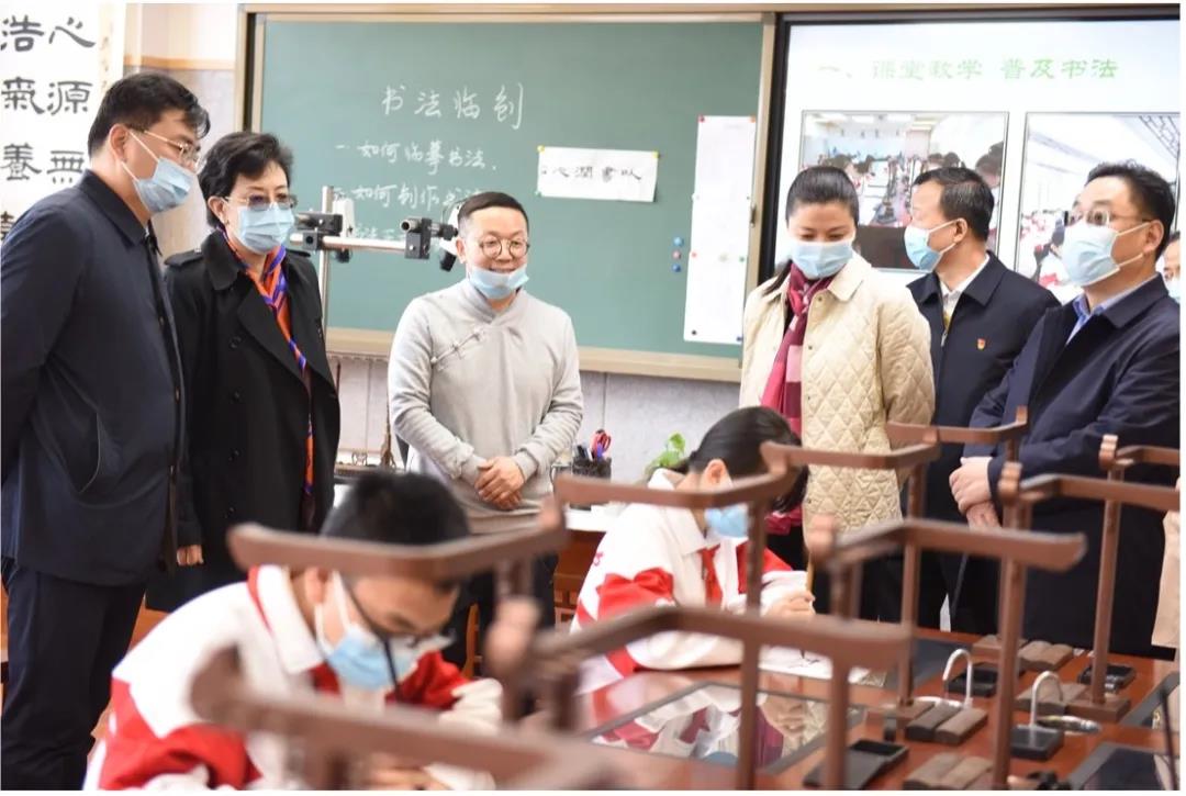 靳諾一行到學(xué)校特色智慧書法教室觀看師生現(xiàn)場教學(xué)展示