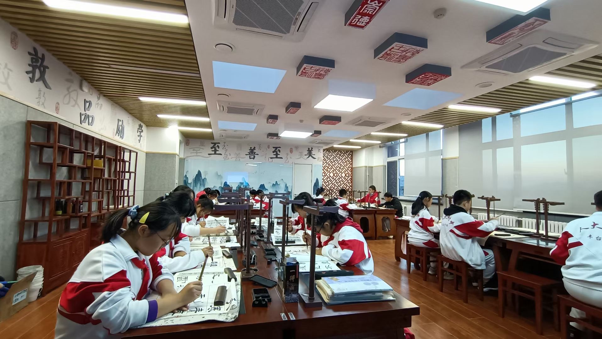 人大附中豐臺學(xué)校學(xué)生們在華文眾合智慧書法教室里上課