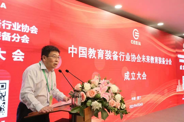 4月24日,中國教育裝備行業協會未來教育裝備分會成立大會于廈門國際會議展覽中心順利召開。北京師范大學、華南師范大學等相關單位領導,河北、吉林、安徽、云南等教育裝備管理部門負責人和全國各級各類教學機構及企業代表約200人參加會議。中國教育裝備行業協會副會長兼秘書長夏國明、中國教育裝備行業協會副秘書長朱俊英出席會議,大會由中國教育裝備行業協會王海明主任、未來教育裝備分會秘書長孔凡明分別主持。