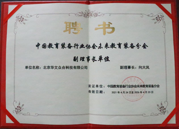 平臺創始人孔凡明任未來教育裝備分會秘書長,大會還表決產生了分會常務副理事長、副理事長、常務理事、理事及副秘書長,審議通過了分會管理辦法。北京華文眾合科技有限公司當選未來教育裝備分會副理事長單位、董事長向大鳳當選副理事長。