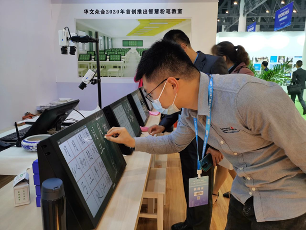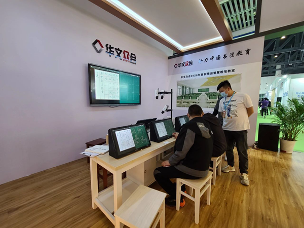 本次展會是大型教育裝備展與終端的對接,是國內教育行業頂尖產品、技術和解決方案的展示。華文眾合展位更是摩肩擦踵,工作人員詳細的解答,忙得不亦樂乎。在這個國內高規模高品質的教育展會上,華文眾合憑借多年來不斷研發創新的智慧書法教室產品,成為教育裝備行業具有影響力的智慧書法教室領軍品牌。展會現場帶來的第七代智慧書法教室、首創推出的智慧粉筆教室,為觀眾帶來一場品質與技術交融的視覺與體驗盛宴!