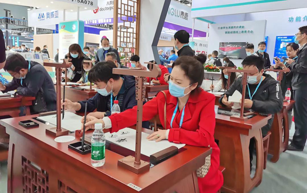 在現場,工作人員一對一服務,對參觀者的疑問進行詳細解答,并對第七代智慧書法教室的功能與亮點做了全方位介紹。