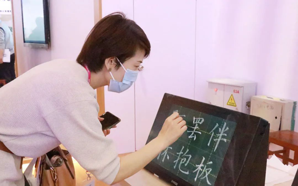隨著教育信息化的深入和發(fā)展,現(xiàn)代多媒體輔助教學已經(jīng)廣泛被課堂利用,但是傳統(tǒng)的黑板板書卻仍然有著不可忽視的作用。針對高等師范院校師范生粉筆板書的需求,華文眾合首創(chuàng)推出智慧粉筆教室,結(jié)合歷代智慧書法教室的亮點,以國內(nèi)師范院校的三筆字教學為導(dǎo)向,還原了“老師在講臺授課、學生在座位上學習”的常規(guī)課堂場景;通過交互式粉筆臨摹臺的專利技術(shù),讓學生用普通粉筆即可直接在臨摹屏上書寫,還原了粉筆書寫的體驗。智慧粉筆教室的誕生,使高校粉筆教學工作更加科技化和系統(tǒng)化,有利于師范類院校實現(xiàn)文化傳承職能,促進師范生就業(yè)問題。