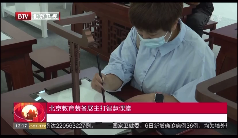 【在“智慧教育”展區,記者注意到,在“雙減”政策的大背景下,參展企業多以助力學校人才培養、提升教育質量為著力點。華文眾合副總裁陳方義告訴本報記者,借助科技為書法教育服務,通過場景技術讓網絡課堂達到“名師面對面”以及不同地域學生“天涯若同堂”的效果。通過人工智能技術實現筆尖跟蹤功能,讓學生能精準觀察老師運筆的過程。臨摹臺采用網絡供電技術,從根本上解決學生端用電安全的問題。智慧書法教室既注重技術的先進性,又注重教學的先進性。】