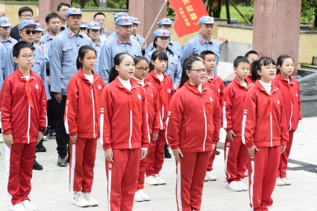 在紅軍飛奪瀘定橋紀念碑前,詩書長征路活動首發團全部團員莊嚴肅立,瀘定縣瀘定橋小學的12名小學生在德育處主任獻德仙的指引下整齊劃一,慷慨激昂地朗誦《七律·長征》等紅軍長征詩詞。