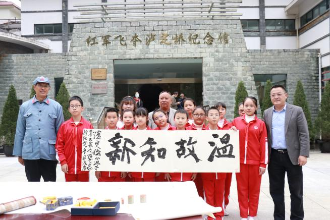 此后,中國書法家協會會員、成都市書法家協會副主席魏愛臣更是現場揮毫潑墨,為此次活動題字,詩書長征路組委會將其中一幅書為“溫故知新”的作品捐贈給瀘定橋小學,同時,魏愛臣現場解讀了“溫故知新”四個字的新時代含義。他表示,溫故知新不僅僅是對知識學習的要求,更是對青少年應該不忘艱苦歲月,銘記偉人先烈,努力實現中國夢的新時代要求。