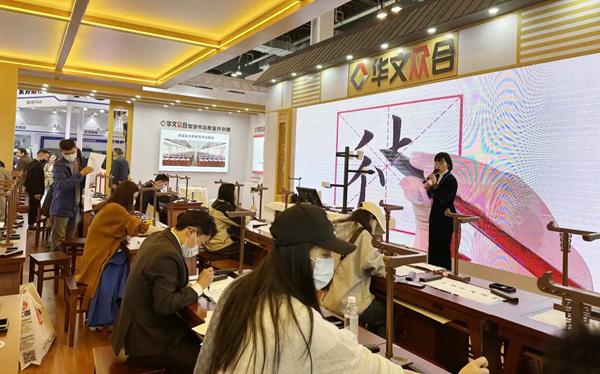 作為智慧書法教育裝備領軍品牌,華文眾合攜明星產品第8代智慧書法教室及智慧粉筆教室亮相本次展會。