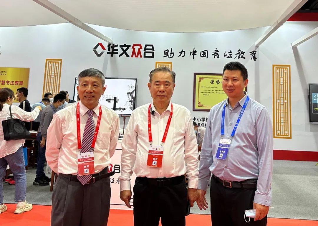 深圳市教育裝備行業協會會長彭錦環(左二)蒞臨指導華文眾合展位