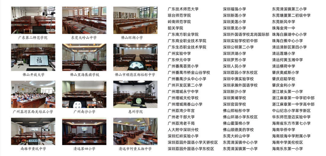 目前,華文眾合智慧書法教室已走進全國4000多所中小學以及300多所大學,包括清華大學附屬中學,中國人民大學附屬中學及附屬小學、首都師范大學等名校。在廣東地區擁有眾多優質案例,包括廣東技術師范大學、廣州實驗中學、廣東仲元中學、廣州開發區第二小學、深圳荔園外國語小學、深圳福強小學等。