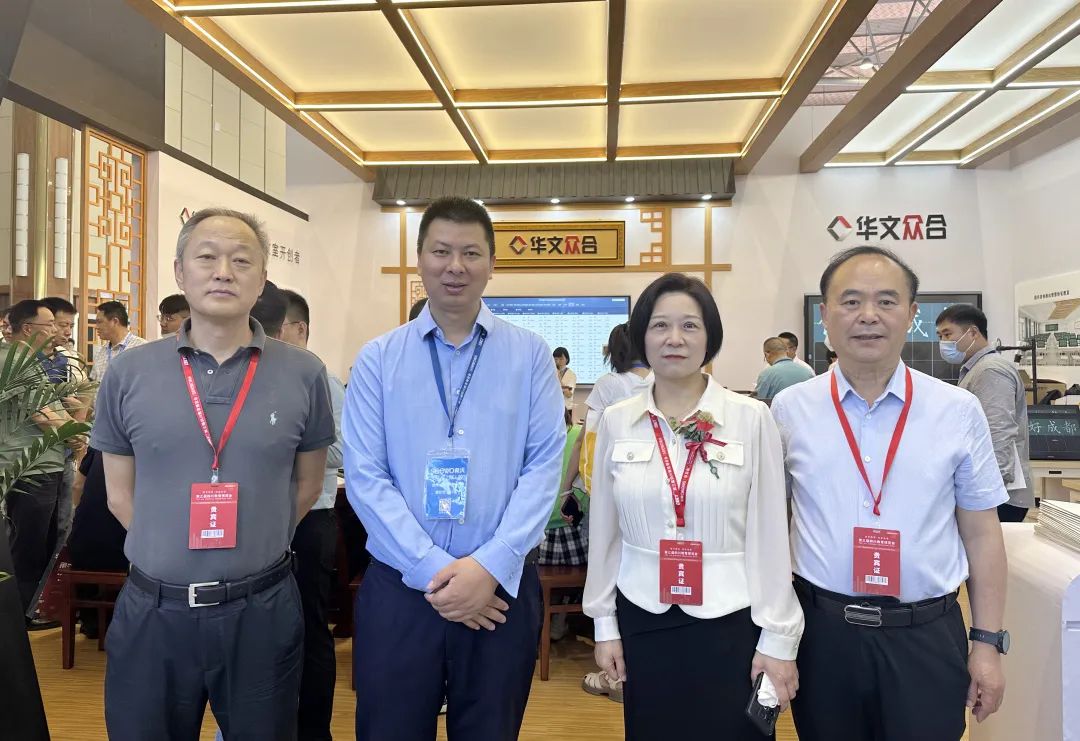 河南省教育廳機關服務中心主任姜燕(左一)、河南省教育資源保障中心副主任孫艷紅(右二)、河南省教育裝備行業協會會長林忠培(右一)蒞臨指導